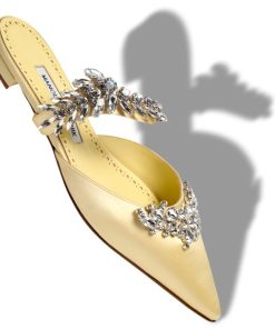 Manolo Blahnik Women’s Style Lurumflat | Light Cream Satin Crystal Embellished Flat Mules | Cream