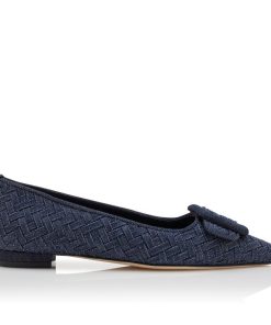 Manolo Blahnik Women’s Style Lurumflat | Navy Blue Satin Crystal Embellished Flat Mules | Blue