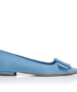 Manolo Blahnik Women’s Style Maysalepumpflat | Light Blue Suede Buckle Detail Flat Pumps | Blue
