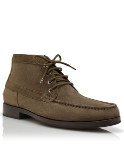Dark green calf suede ankle boots featuring lace-up closure and black rubber sole. Upper: 100% calf suede. Sole: 80% rubber, 20% calf leather. Lining: 100% calf leather.Heel measures 10 mm.UK sizing.Made in Italy.