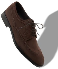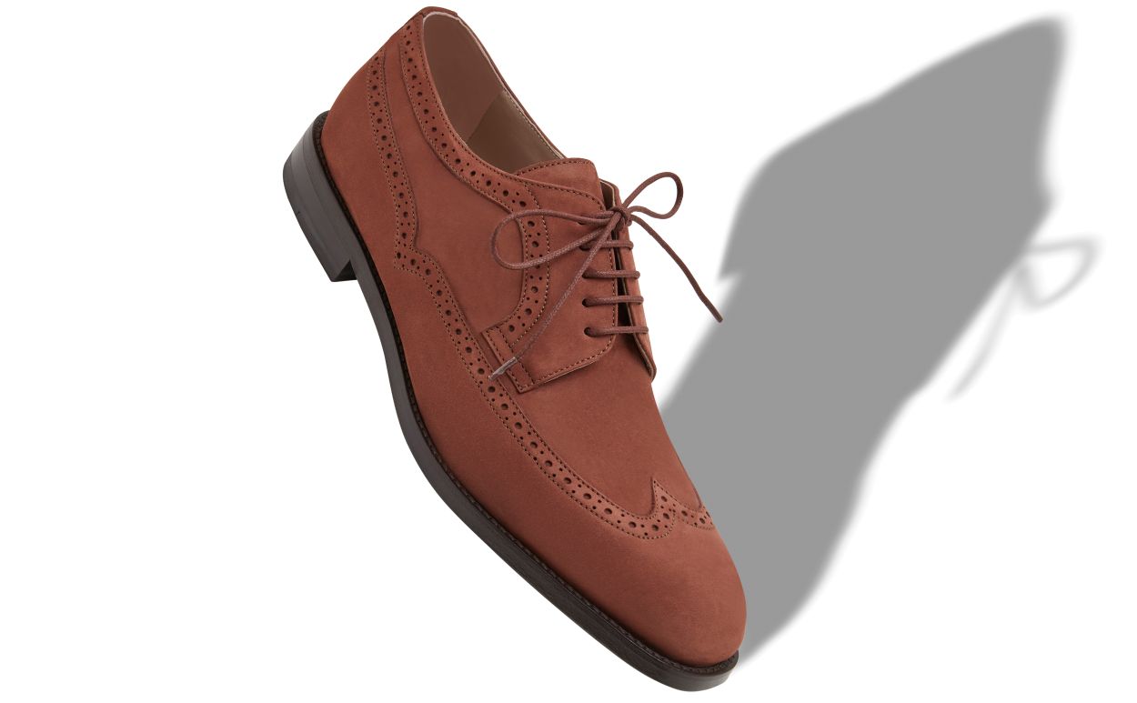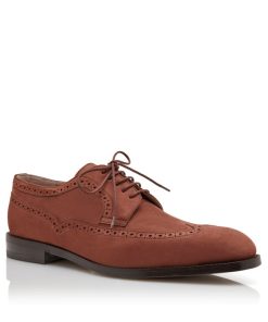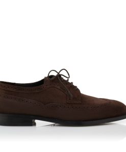 Brown suede Oxfords featuring broguing details and waxed cotton laces.Upper: 100% calf leather. Sole: 95% calf leather, 5% rubber. Lining: 100% calf leather. Heel measures 10 mm. UK sizing. Made in Italy.