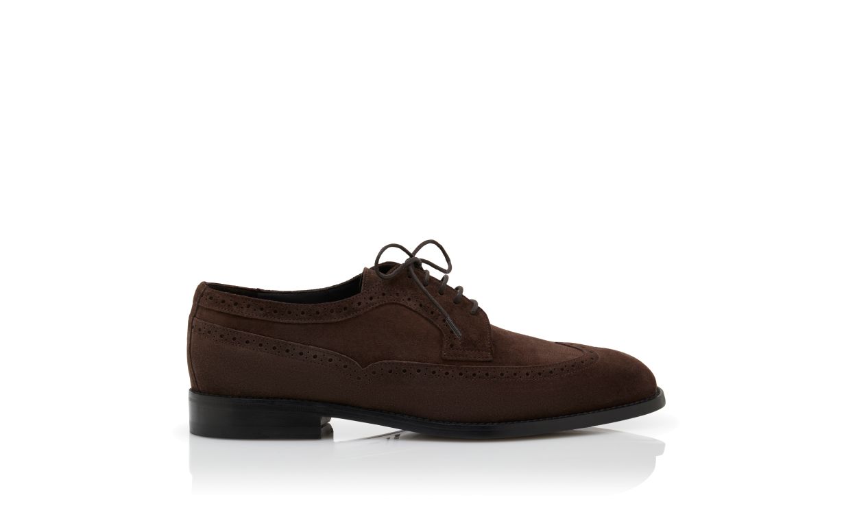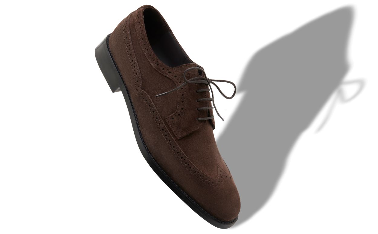 Dark brown suede Derbys featuring broguing details and waxed cotton laces.Upper: 100% calf suede. Sole: 95% calf leather, 5% rubber. Lining: 100% calf leather. Heel measures 10 mm. UK sizing. Made in Italy.