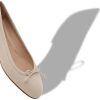 Navy blue patent leather pointed toe Mary Jane flat pumps featuring white patent leather front strap with navy blue button closure. Finished with flat stacked heel.